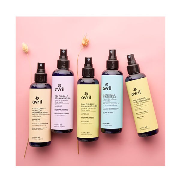 Un producto, 2 usos: para un efecto refrescante por la mañana, el agua floral de Manzanilla orgánica certificada de Avril es tu mejor aliada.