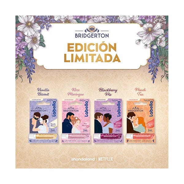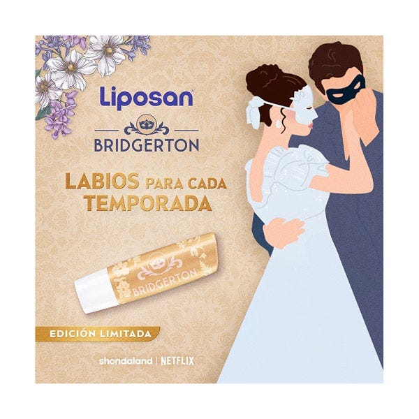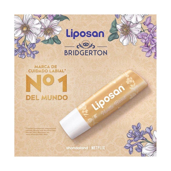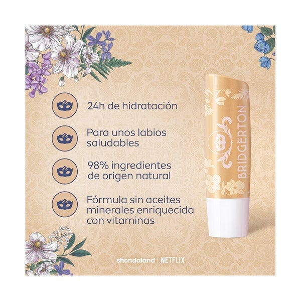 El Bálsamo Labial 24h Hidratación Liposan Bridgerton llega en una edición limitada inspirada en el encanto elegante y romántico de la serie. Su fórmula proporciona hidratación continua durante 24 horas, manteniendo los labios suaves, protegidos y con un aspecto saludable durante todo el día.