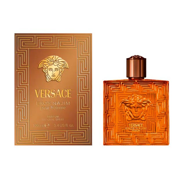 Najim, que significa «estrella» en árabe, está encarnada en Versace Eros Najim, una fragancia radiante y poderosa que evoca la cálida luz dorada del desierto de Oriente Próximo al atardecer. La fragancia se presenta en un frasco dorado-ámbar transparente con motivos de Greca grabados, una Medusa central y un tapón de color bronce.