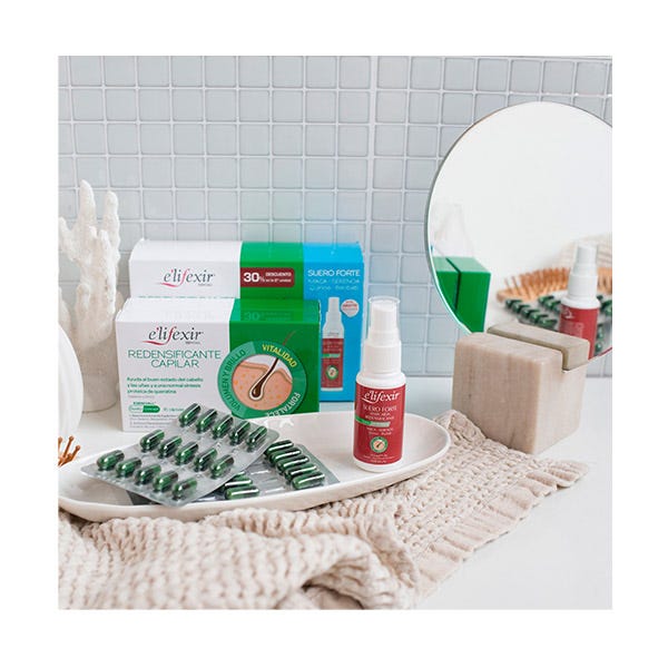 Tanto Elifexir Esenciall Redensificante Capilar en Cápsulas como Elifexir Dermo Suero Forte Anticaida Redensificante están indicados para aquellas situaciones en las que existe caída del cabello.