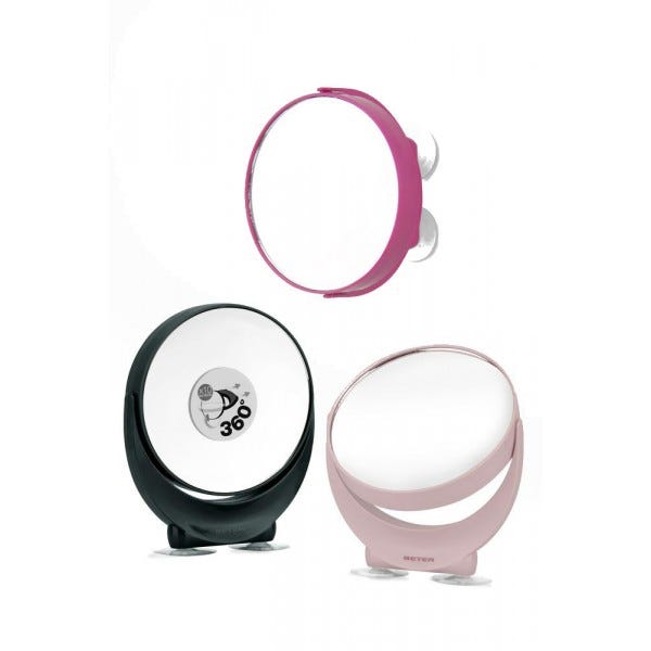El Espejo Oh! 360º de Beter es un práctico espejo de aumento doble: por un lado ofrece la imagen 10 veces ampliada, mientras que por el otro muestra la imagen normal.