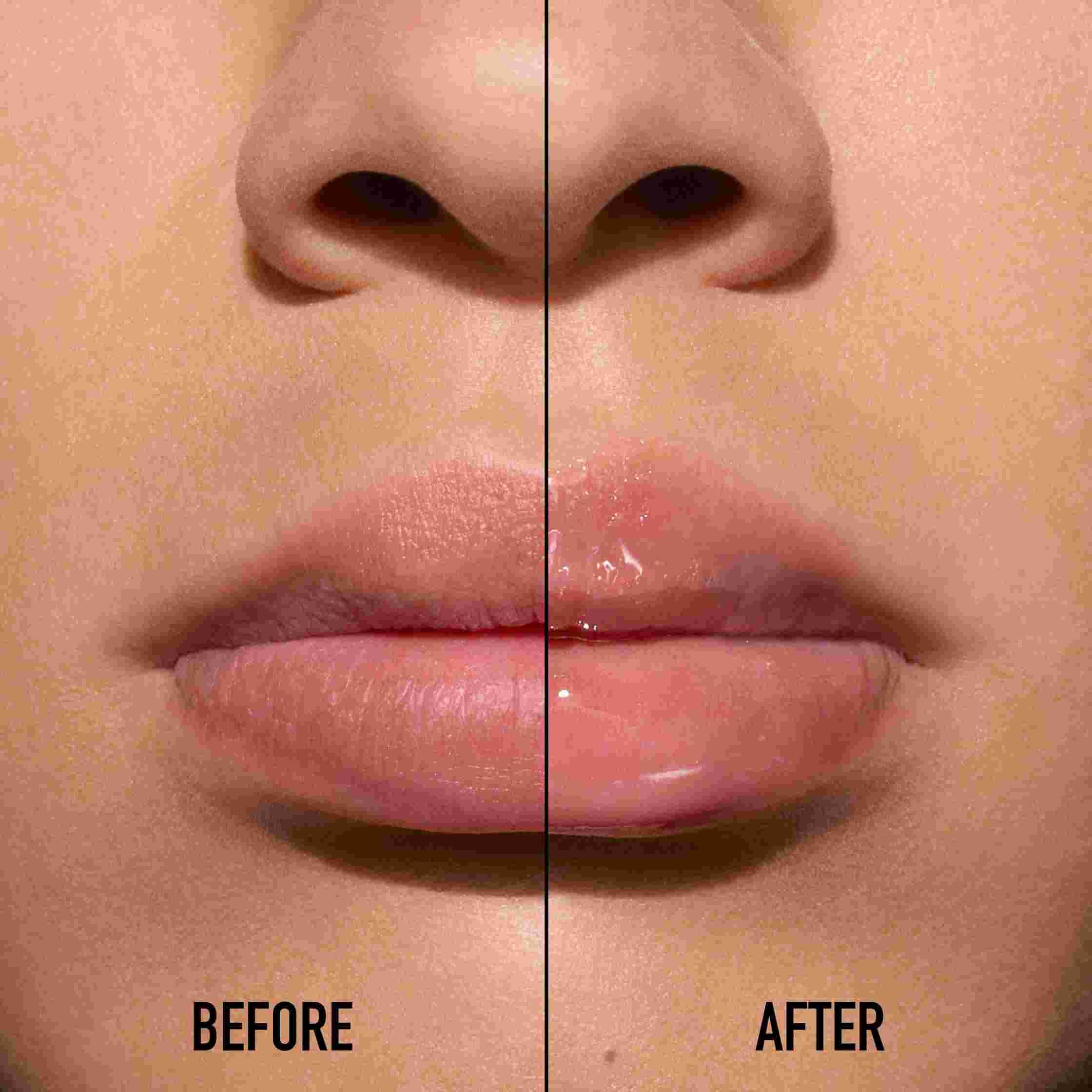1. Utilice Dior Addict Lip Glow Oil solo o como base antes de aplicar la barra de labios, retirando el exceso de producto.