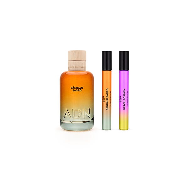 Composición del estuche: Sándalo Sacro Eau de Parfum vaporizador 100ml + Sándalo Sacro Eau de Parfum formato viaje 10ml + Neroli Ecstasy Eau de Parfum formato viaje 10ml.
