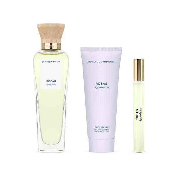 Estuche de regalo Eau de Toilette Agua Fresca de Rosas de Adolfo Domínguez. Composición del estuche: