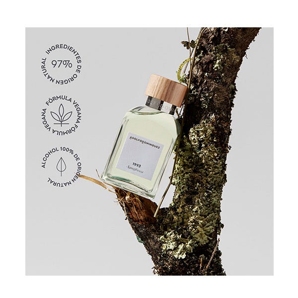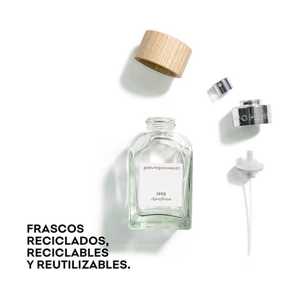 La colección de perfumes Adolfo Domínguez perdura más allá de las modas. Reivindicamos el ingrediente puro, desnudo. Una flor no necesita más que su esencia. Respetamos la belleza de la naturaleza. Volvamos a la raíz, a nuestro origen. Hecho con vidrio reciclado, reciclable y reutilizable de por vida, gracias al nuevo sistema de rosca. Nuestro tapón es 1% de madera FSC y % plástico y etiqueta de papel FSC procedente de bosques bien gestionados. Un diseño atemporal y único para toda la colección hecho en España.
