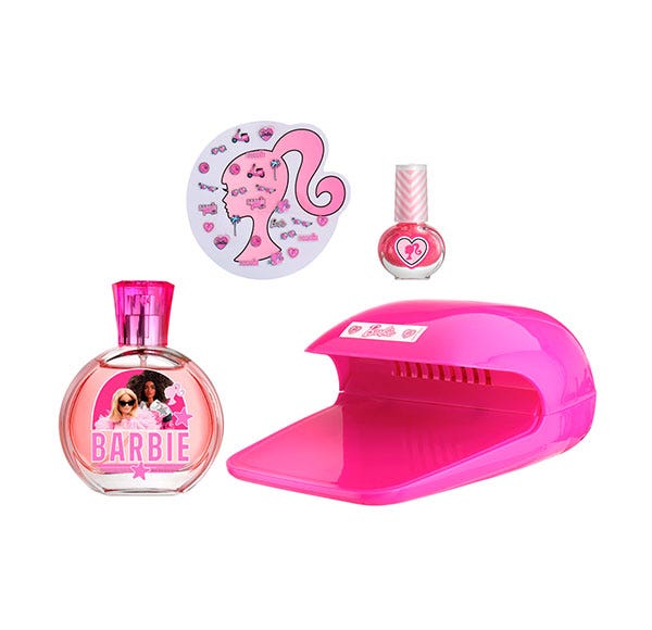 El estuche de Barbie contiene una fragancia cítrica y floral en formato 50 ml y un kit de manicura completo con el que podrás pintar, decorar y secar tus uñas. ¡Siempre a la moda!