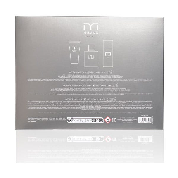 MILANO BLACK es una fragancia oriental que inicia con una combinación de drescor de la mandarina italiana y toques especiados de pimient roja y canela, entremezclándose con su corazón frutal y floral .