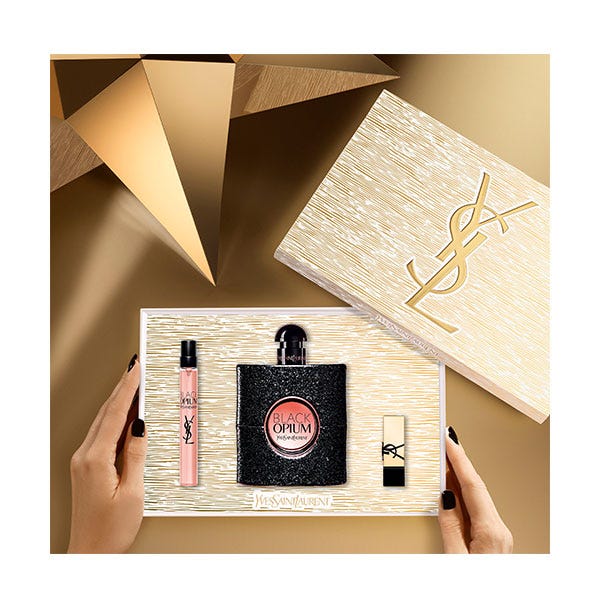 Black Opium se convierte en el primer café floral del mercado, diseñado para las noches más locas, aquellas que dan un giro inesperado para pasar a convertirse en recuerdos únicos... Seguro que ahora te ha venido a la cabeza alguno de esos momentos. Es tu aroma y el de todas las mujeres que viven sin ataduras, por impulsos y son libres. El cofre de regalo contiene el eau de parfum 90ml Black Opium junto con un mini Rouge Pur Couture n ° 1, y una mini Mascara Volume Effet Faux Cils y una bolsa negra.