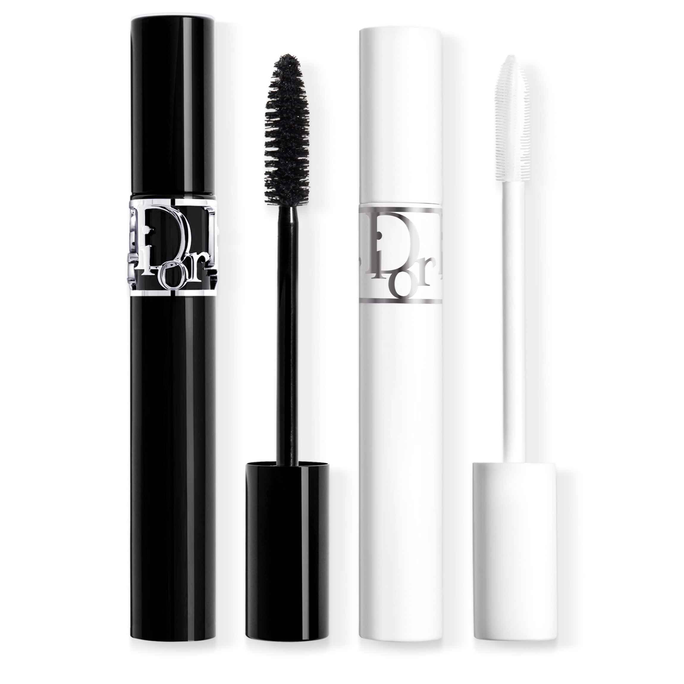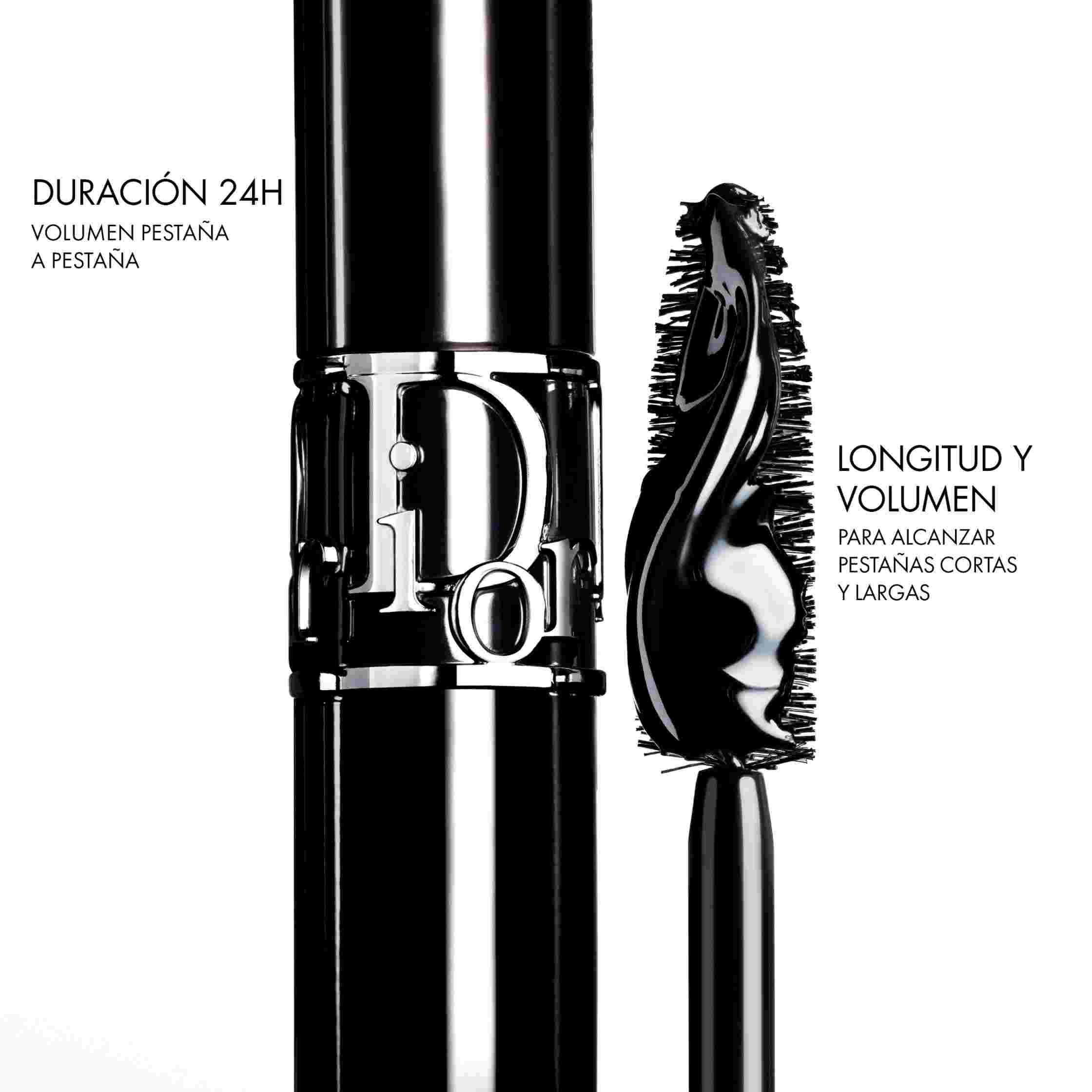 - Diorshow Máscara de pestañas, tono 090 Black. Para aplicar en segundo lugar sobre el primer-sérum, esta máscara negra, compuesta por un 90 %** de ingredientes de origen natural, despliega las pestañas para un volumen perfectamente definido y con acabado que no transfiere. La mirada está espectacular en una sola pasada.