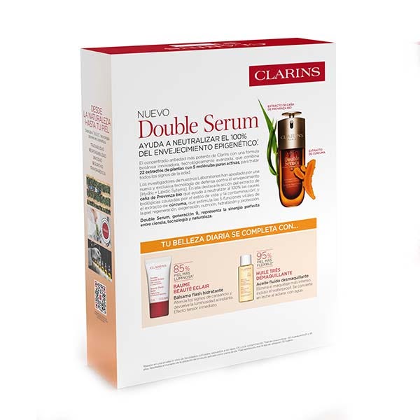El Cofre Double Serum & Bálsamo Belleza de Clarins es la combinación perfecta para una piel radiante, lisa y revitalizada en un solo gesto. Este dúo de tratamiento icónico combina el poder antiedad de Double Serum, con sus 21 extractos vegetales para combatir los signos visibles de la edad, y el Bálsamo Belleza Relámpago, un imprescindible para iluminar y alisar la piel al instante.