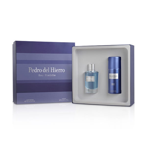 Estuche con el perfume de hombre de Pedro del Hierro Eau Fraiche y desdorante con la misma fragancia.