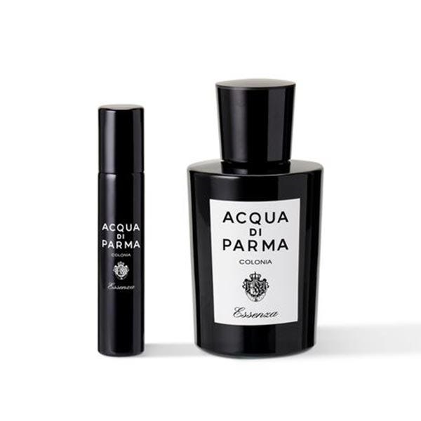 Un Set Deluxe de Colonia Essenza de Acqua di Parma en dos formatos: uno para tu hogar y otro para viajar.