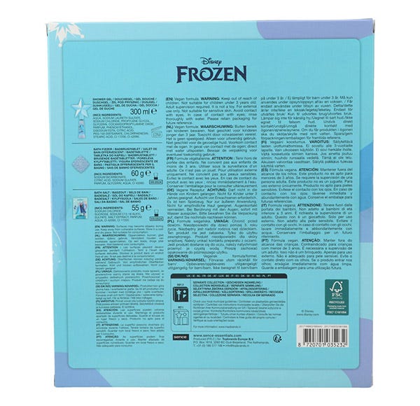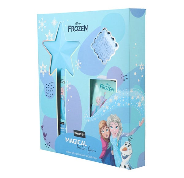 Imagina la bañera o la ducha en un paraíso congelado con la varita mágica e imagina el personaje de Anna o Elsa. Los productos del set contienen una fórmula mágica para dar al cuerpo una sensación suave e hidratada.