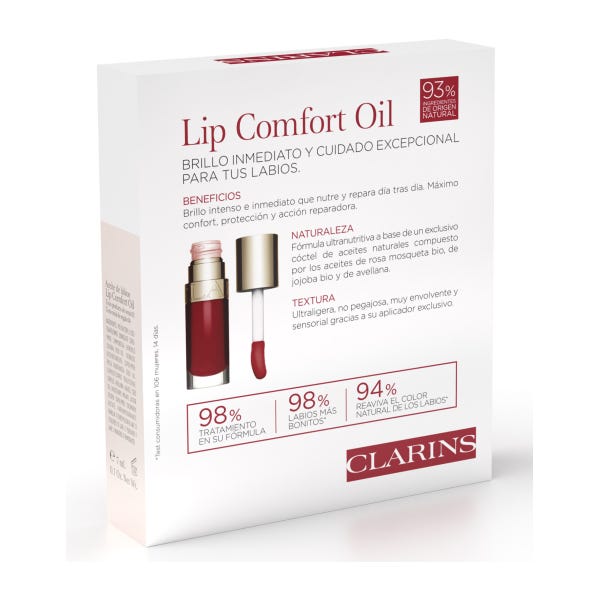 Lip Comfort Oil es un fantástico aceite de labios con color con el que mantendrás el brillo, la nutrición y el confort. Su fórmula ha sido perfeccionada y enriquecida con un 93% de ingredientes de origen natural, incluyendo un 30% de aceites botánicos ultranutritivos, entre los que se encuentran los extractos de aceite de jojoba bio, aceite de avellana y aceite de rosa mosqueta bio. Además de proporcionar nutrición y confort, este extracto fortalece la función de la barrera del labio y, por lo tanto, protege contra las agresiones ambientales.