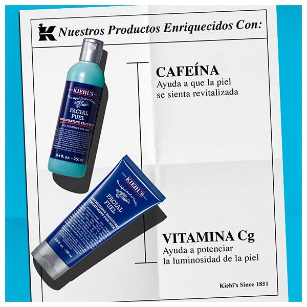 Masajea sobre la piel húmeda con movimientos circulares ascendentes, evitando la zona de los ojos, y aclara. Continúa con Fuel Energizing Moisture Treatment, el tratamiento hidratante diario de Kiehl's favorito de los hombres.