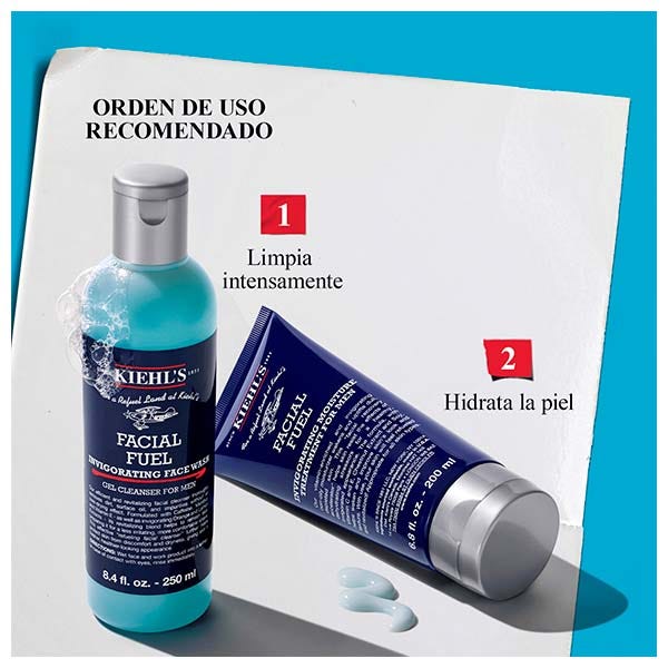 Aplica Facial Fuel Face Wash sobre la piel húmeda y aclara bien. Aplica Facial Fuel Moisturizer sobre la piel limpia después de limpiar o afeitar.