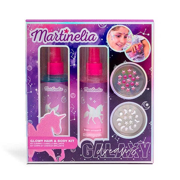 ¡Lleva tu look a otro universo con el MARTINELIA GALAXY DREAMS GLOWY HAIR & BODY KIT! Este kit todo en uno te permite crear un cabello de ensueño con tonos vibrantes y destellos cósmicos que capturan la magia del espacio. Diseñado para quienes quieren brillar con un estilo fuera de este mundo, este kit incluye colores intensos, fáciles de aplicar, que se combinan perfectamente para un efecto galáctico único. ¡Atrévete a explorar nuevas galaxias con estilo!