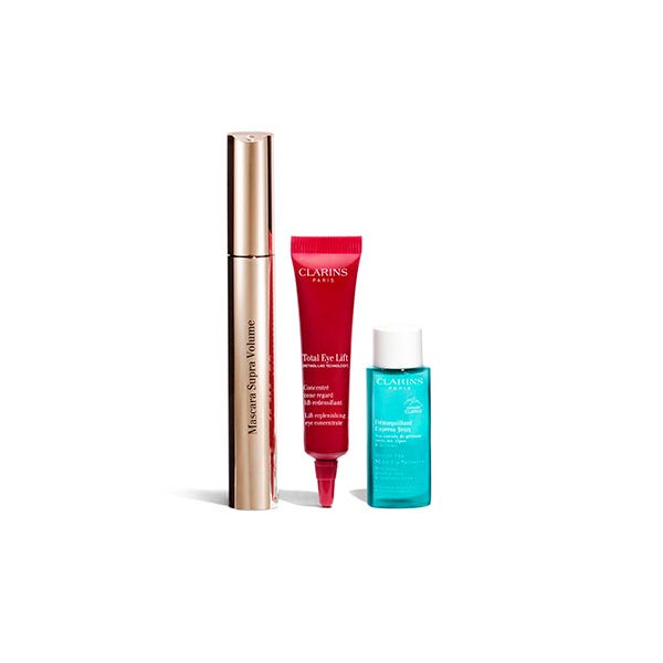 El cofre de Navidad Máscara Supra Volumen de Clarins ofrece una rutina completa para una mirada espectacular y cuidada.