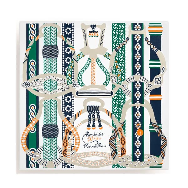 Compuesto por motivos de inspiración ecuestre entrelazados, el diseño Fantaisie d’Étriers, obra de la ilustradora Virginie Jamin, contagia su particular brillo a este estuche festivo. Curvas, trenzas y líneas torcidas acapararán toda la atención en las celebraciones de fin de año.