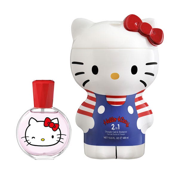 Estuche de la gatita japonesa más querida Hello Kitty incluye una fragancia en formato 50 ml con aroma afrutado y floral, además un gel de ducha y champú 400 ml.