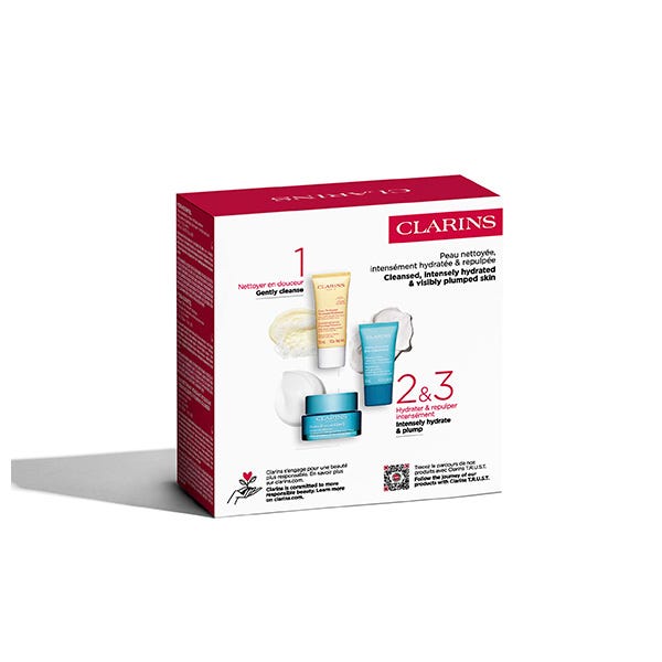 El Cofre Hidra Essentiel de Clarins reúne un ritual completo de hidratación facial diseñado para todo tipo de pieles, especialmente las deshidratadas, que necesitan confort y luminosidad durante todo el día, gracias al poder del extracto de kalanchoe bio, que ayuda a reactivar los mecanismos naturales de hidratación de la piel y a preservar sus reservas de agua, combinado con texturas sensoriales que envuelven el rostro sin efecto graso, mejorando la elasticidad, la suavidad y el aspecto de las líneas de deshidratación, para una piel más fresca, flexible y protegida frente a los cambios de temperatura y las agresiones externas, convirtiéndose en un cofre de regalo perfecto para quienes buscan un tratamiento hidratante Clarins eficaz, respetuoso y apto para el uso diario.
