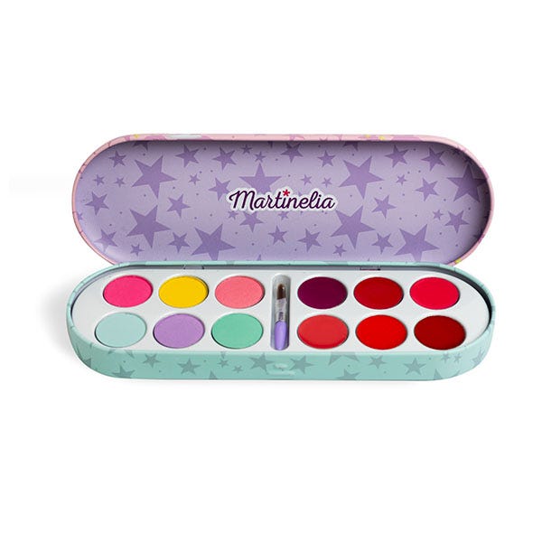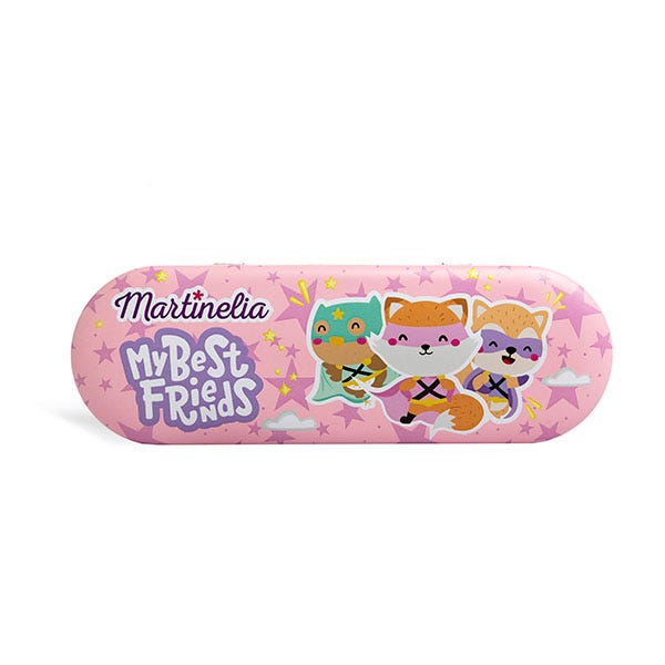 Martinelia My Best Friends Caja Metálica de Maquillaje es un encantador set para niños. Presenta una pequeña caja metálica adornada con dibujos infantiles. Contiene sombras, brillos de labios y más, perfecto para regalar