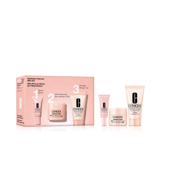 Hidrata tu piel con el Mini Kit de Hidratación de Clinique. Con tres superhidratantes fáciles de transportar y sin aceites, el set ayuda a hidratar las zonas secas, favoreciendo un cutis de aspecto más radiante.