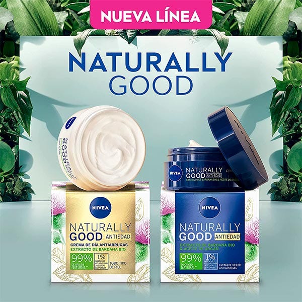 Con 100 años de experiencia en el cuidado de la piel, Nivea ha desarrollado una gama de NATURALLY GOOD que te ofrece una transparencia al 100% de todos los ingredientes utiliza.