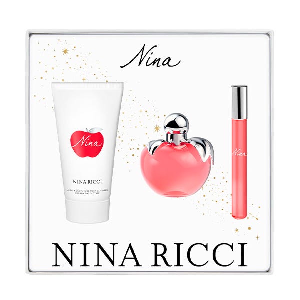 Este set de regalo contiene: Nina 50ml + Loción Corporal Nina 75ml + Nina 10ml