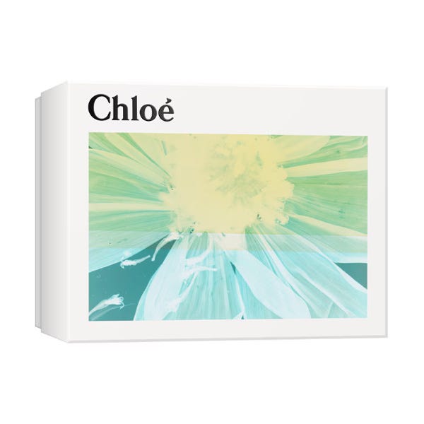 Presentado en un elegante frasco redondeado con tapón dorado y rematado con una delicada cinta rosa rubor, el Eau de Parfum para mujer va acompañado de una miniatura de la fragancia Chloé y una loción corporal perfumada inspirada en el encantador cielo nocturno. Unas coloridas flores gráficas revelan sus corazones dorados y adornan el embalaje color marfil del estuche de regalo.