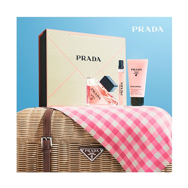 Este cofre incluye un frasco recargable de Eau de Parfum de 50 ml, un formato de viaje de 10 ml ideal para llevar siempre contigo y una loción corporal de 50 ml que hidrata la piel mientras prolonga el aroma de la fragancia. El frasco triangular de diseño radical en tono rosa coral, con bordes suaves y detalles dorados, refleja el estilo disruptivo de la casa Prada.