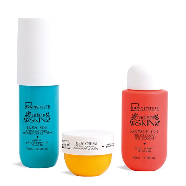 Descubre el set ideal para el cuidado diario con el Radiant Skin Trio Set. Este trío de gel de ducha, loción corporal y body mist ofrece una experiencia única que combina hidratación, frescura y una fragancia duradera. Perfecto para viajes o como un regalo.