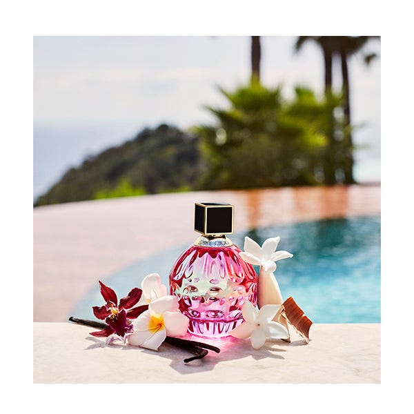 En su frasco en forma de joya, la fragancia se abre con una soleada flor de frangipani y agua de coco. En el corazón, la orquídea se mezcla con un luminoso jazmín. En el fondo, el aroma se vuelve más intenso con la profundidad del sándalo y una exótica vainilla.