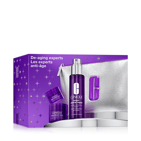 Clinique Expertos en Antiedad. Una colección de nuestras fórmulas antiedad más eficaces, con resultados visibles. Incluye un sérum antiarrugas en tamaño completo.