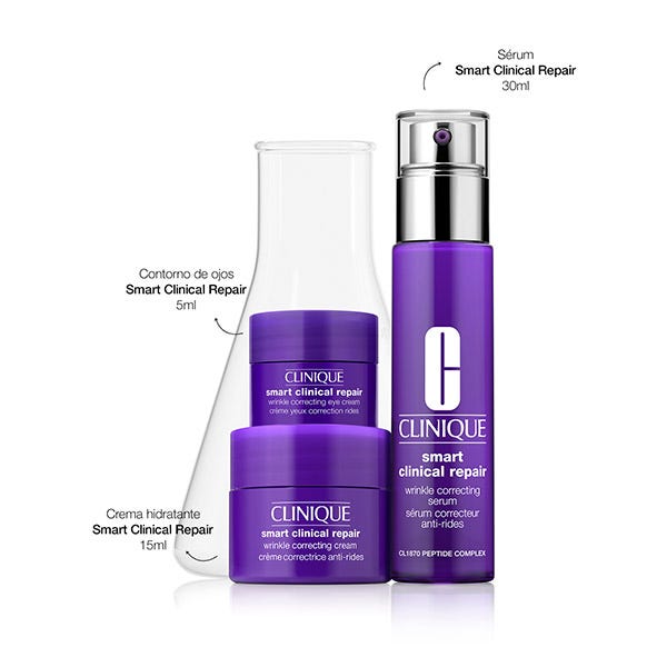 • Clinique Smart Clinical Repair™ Wrinkle Correcting Serum corrige las líneas y arrugas persistentes. Potenciado por un retinoide que es tan suave que puede usarse dos veces al día.