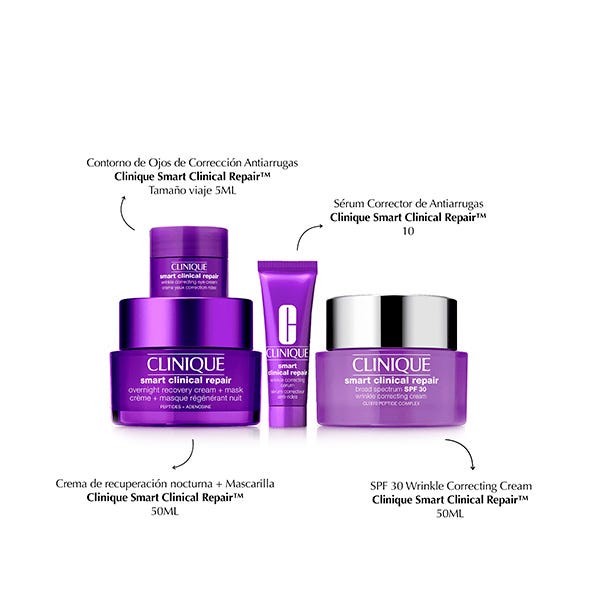 ● Clinique Smart Clinical Repair™ SPF 30 Wrinkle Correcting Cream repara visiblemente las arrugas, protege con SPF 30 y previene futuros daños.
