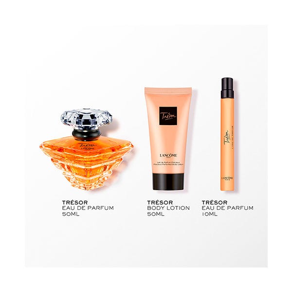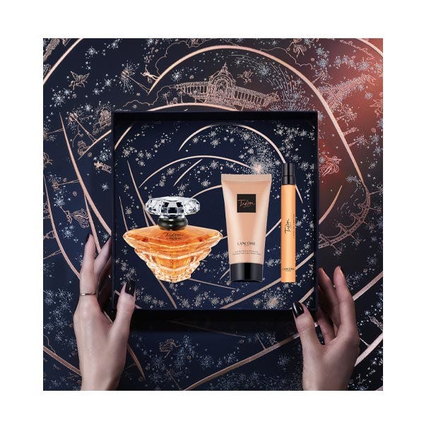 Lancôme presenta este Cofre de Navidad, una edición limitada que celebra la magia de la temporada, combina elegancia, romanticismo y cuidado en un ritual completo. El cofre incluye el Trésor Eau de Parfum 50ml, una fragancia icónica que abre con radiantes notas de rosa y flor de albaricoque, revela un corazón envolvente de lirio, iris y melocotón, y descansa en un fondo sensual de ámbar, sándalo, almizcle y vainilla. Un bouquet luminoso creado para capturar los momentos más preciados y eternos. El Body Lotion 50ml hidrata y suaviza la piel, prolongando la estela del perfume, mientras que el Mini Eau de Parfum 10ml ofrece el formato perfecto para acompañarte en cualquier ocasión. El frasco, en forma de pirámide invertida de cristal con bordes suaves y tapón en forma de diamante, simboliza la feminidad y el poder del amor. Un regalo atemporal para mujeres elegantes y románticas, que buscan una fragancia que envuelva con ternura y sofisticación cada instante.