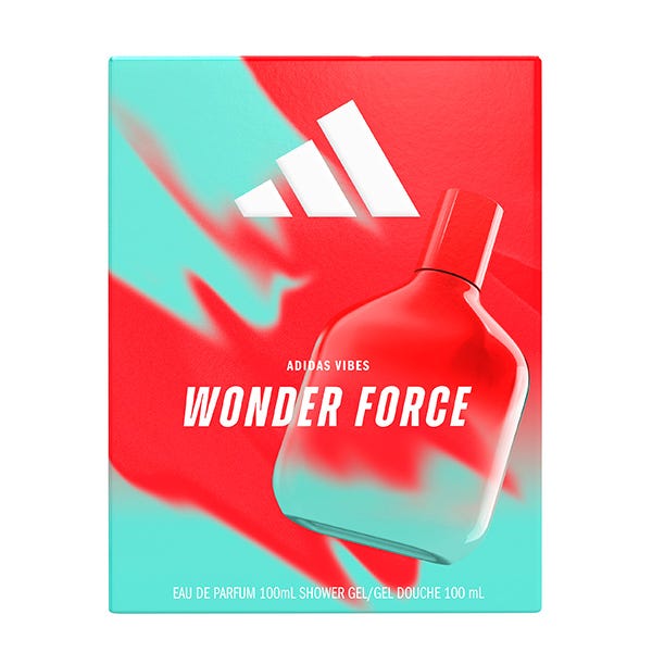 El set de regalo Vibes, que incluye Wonder Force Eau de Parfum y Gel de Ducha, tiene una fragancia que te hace sentir optimista. Wonder Force Eau de Parfum es una fragancia de larga duración con notas de ruibarbo y almizcle blanco que te hace sentir alegre, con ganas de hacer las cosas. El Gel de Ducha perfumado tiene una fórmula vegana y dermotestada con notas de ruibarbo y almizcle blanco, que proporcionan una sensación de alegría.
