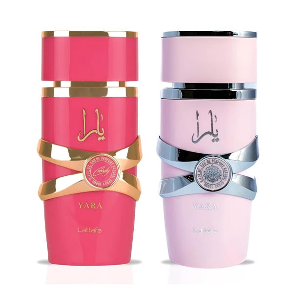 Este pack incluye dos fragancias icónicas:Lattafa Yara Eau de Parfum(100 ml): Una fragancia sofisticada y versátil con notas florales, frutales y un toque cremoso. Perfecta para cualquier ocasión, dejando una estela inolvidable de elegancia y frescura.Lattafa Yara Candy Eau de Parfum (100 ml): Un perfume dulce y femenino con una armoniosa combinación de notas florales y frutales, diseñado para mujeres que desean destacar con un aroma irresistible y encantador.
