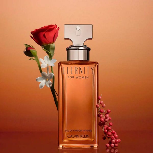 Como una intensa expresión de amor eterno, Calvin Klein ETERNITY Eau de Parfum Intense para mujer es una fragancia floral especiada que se inspira en la pasión de un encuentro romántico al atardecer.