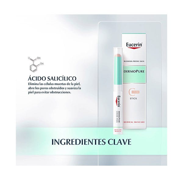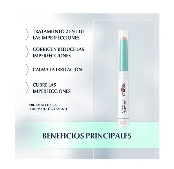 Eucerin DERMOPURE OIL CONTROL Stick Corrector es un corrector con ácido salicílico de efectividad probada a la hora de reducir y cubrir granos y puntos negros.