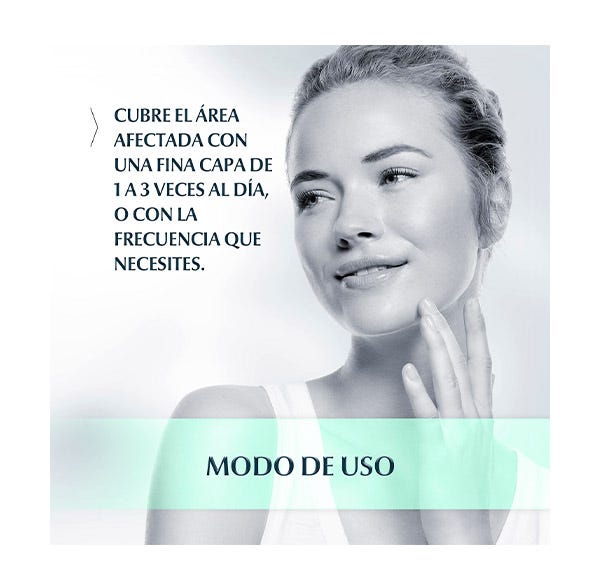 Cubra la zona afectada con una capa fina, entre una y tres veces al día, según sea necesario. A continuación, aplique el maquillaje como corresponda.