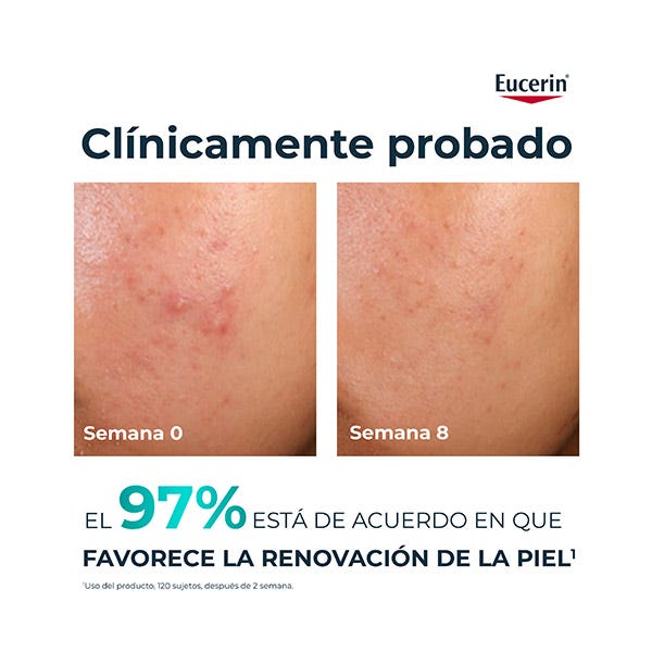Eucerin DERMOPURE OIL CONTORL Tratamiento 10% Hidroxiácidos comienza mejorando visiblemente la piel cuando ha pasado tan solo una semana, y con el tiempo va dando lugar a una piel más clara y de aspecto más terso