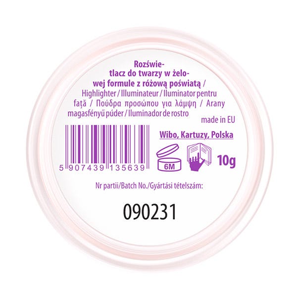Un iluminador facial en una rica fórmula en gel con un brillo rosado para un efecto de resplandor fresco y húmedo.