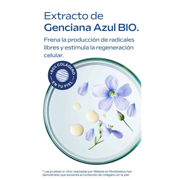 Nuestro exclusivo COLLAGEN+ ACTIVE COMPLEX, elaborado con genciana azul bio, edelweiss bio y centella asiática, actúa como un potenciador natural del colágeno.