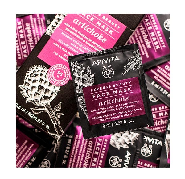 Mascarilla facial con alcachofa, AHA y PHA, la deliciosa hortaliza mediterránea con la impresionante flor morada que florece a principios de verano, ilumina el rostro, al mismo tiempo que reduce el tamaño de los poros.