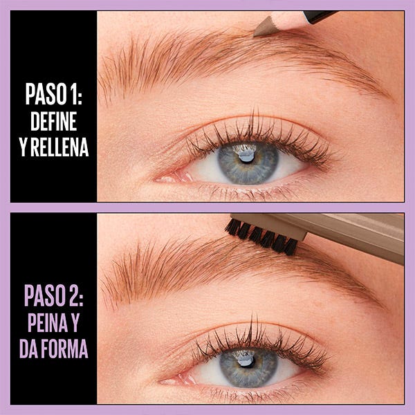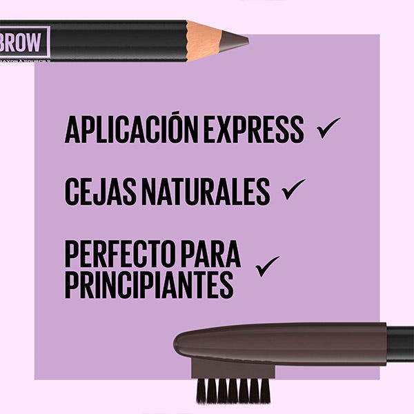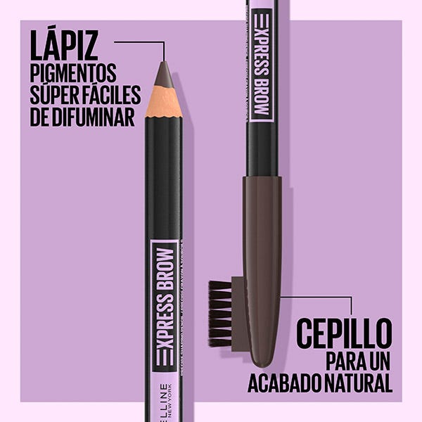 Rellena y define tus cejas de la forma más rápida, natural y sin necesidad de ser una experta con el nuevo lápiz de cejas de Maybelline Express Brow Shaping Pencil y su cepillo para difuminar y peinar.