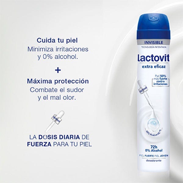 Los desodorantes Lactovit cuidan y protegen tu axila: Su tencnología PATENTADA*, combate el sudor y el mal olor corporal. Su fórmula con PROTEIN CALCIUM aporta la dosis diaria de fuerza a tu piel para mantenerla fuerte y joven.