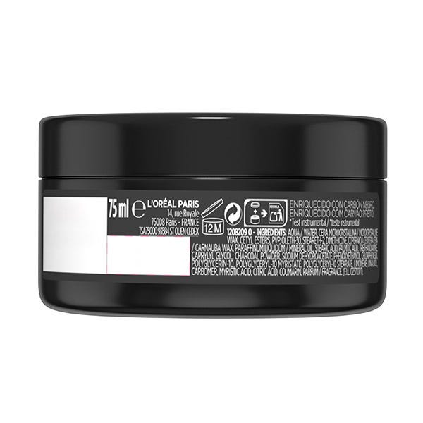 Pasta moldeadora del cabello con una fijación ultra-fuerte 48H enriquecida con carbón negro.