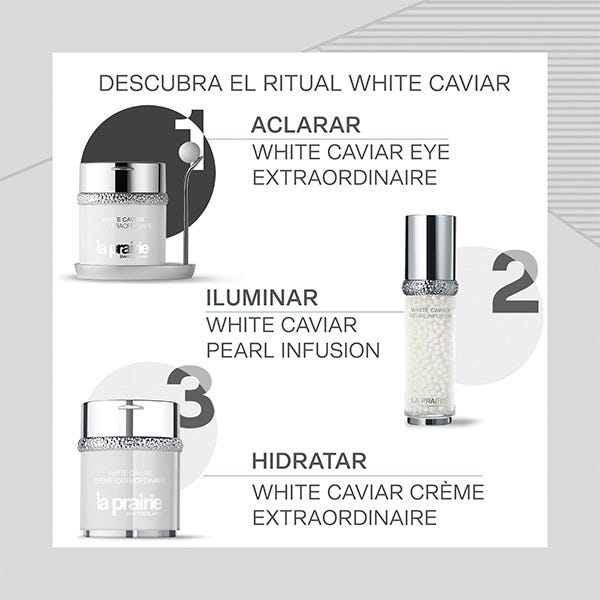 • La crema White Caviar Eye Extraordinaire de La Prairie ayuda a restituir la sensación de firmeza y a suavizar las sombras y contrastes de la zona de los ojos, reduciendo el aspecto de arrugas y ojeras.